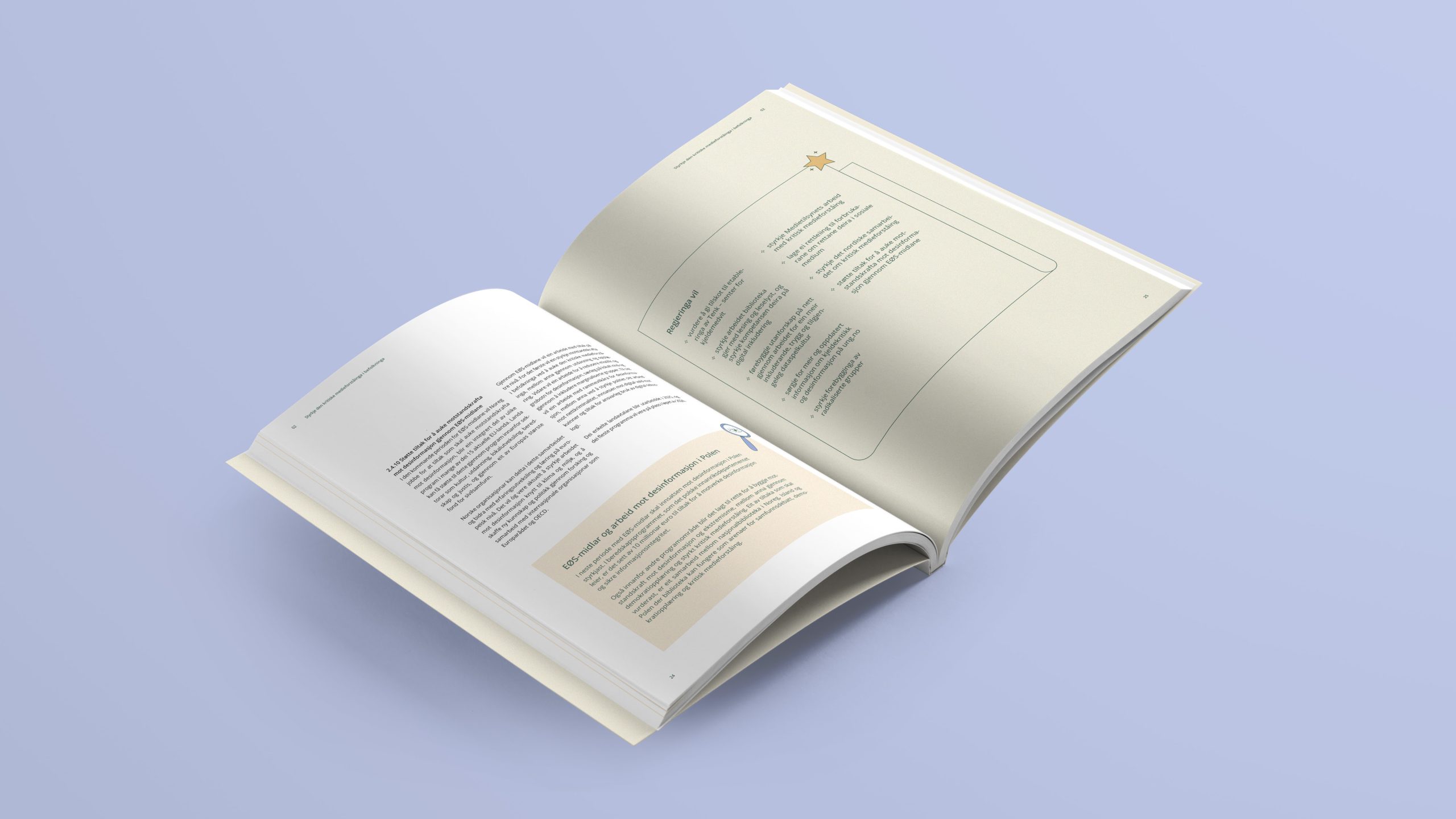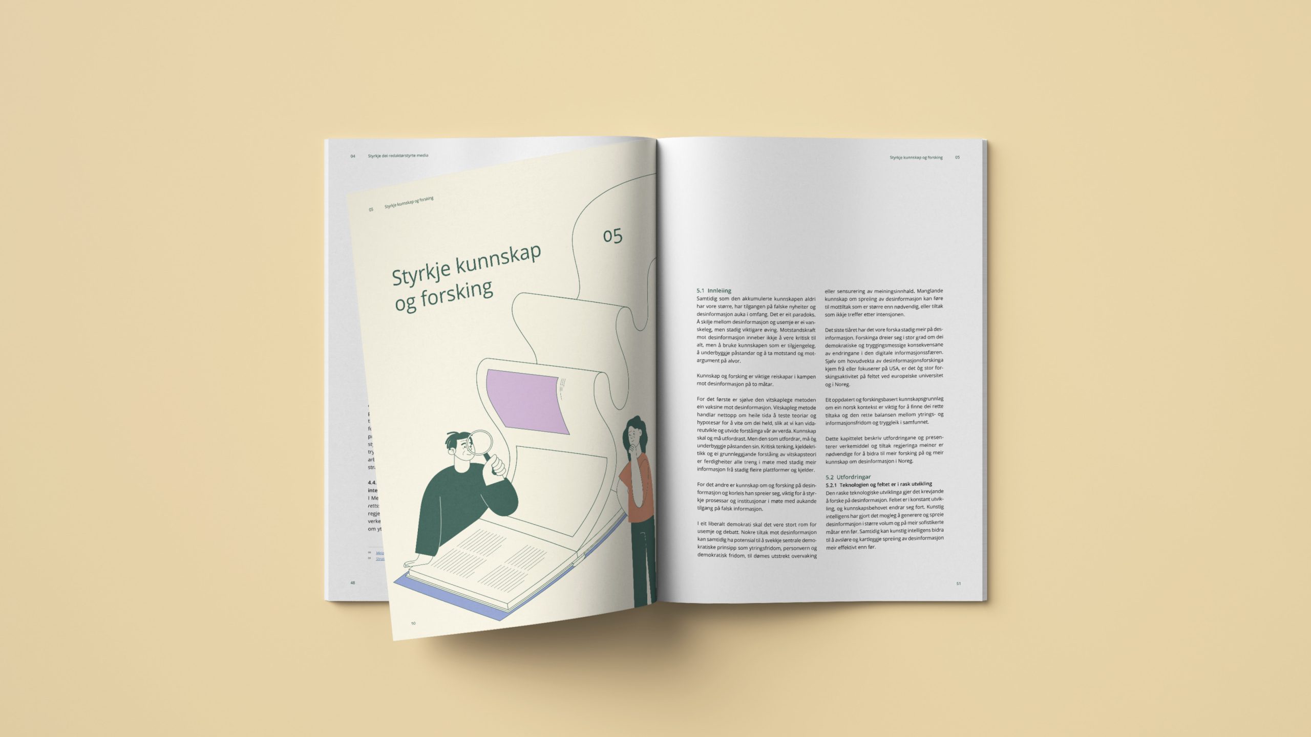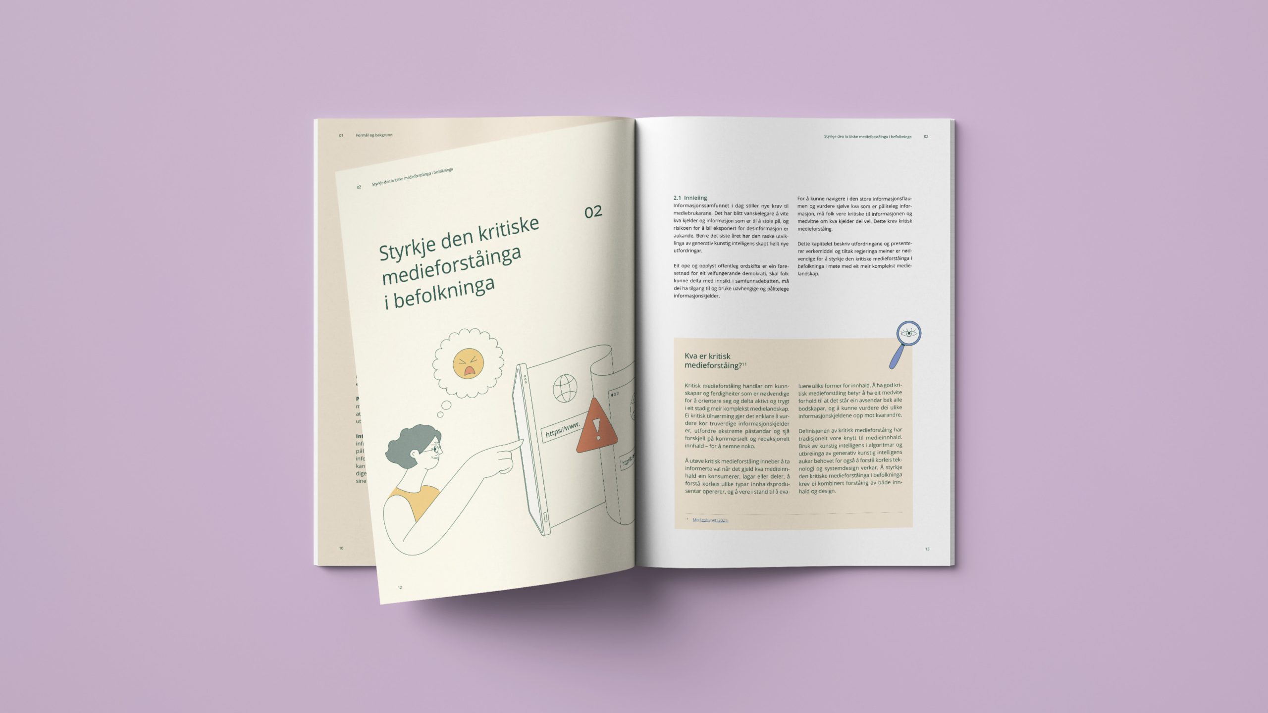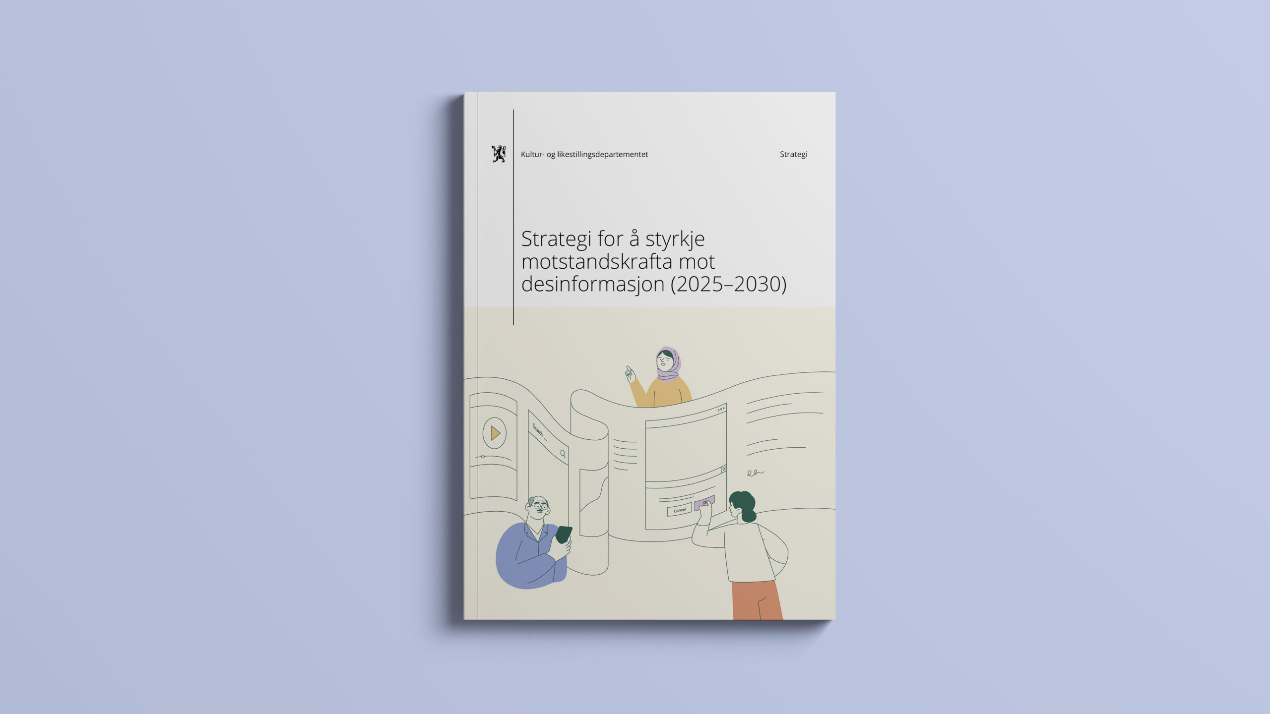 Vi har designet og illustrert strategien Strategi for å styrkje motstandskrafta mot desinformasjon for Kultur- og likestillingsdepartementet.