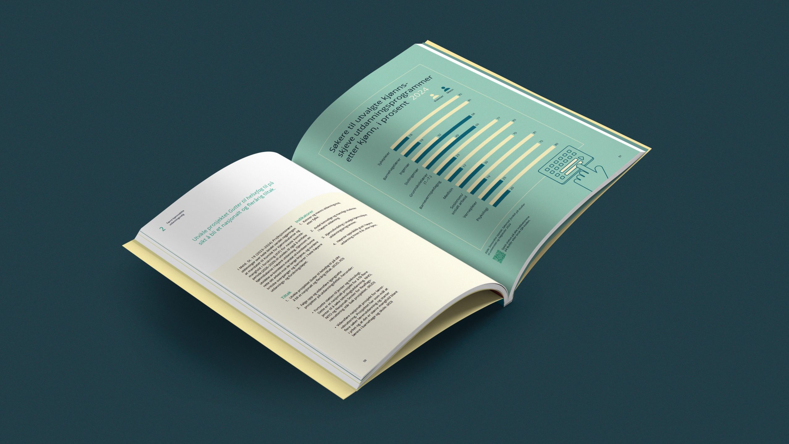 Strategi for likestilling mellom kvinner og menn 2025-2030 er den aller første likestillingsstrategien og KUD hadde store ambisjoner for denne. De ønsket seg noe «helt nytt», uten bruk av stereotypisk symbolikk, foto eller farger. Videre ønsket KUD et positivt visuelt uttrykk for å underbygge et innhold som formidler muligheter, mål og koordinert innsats.