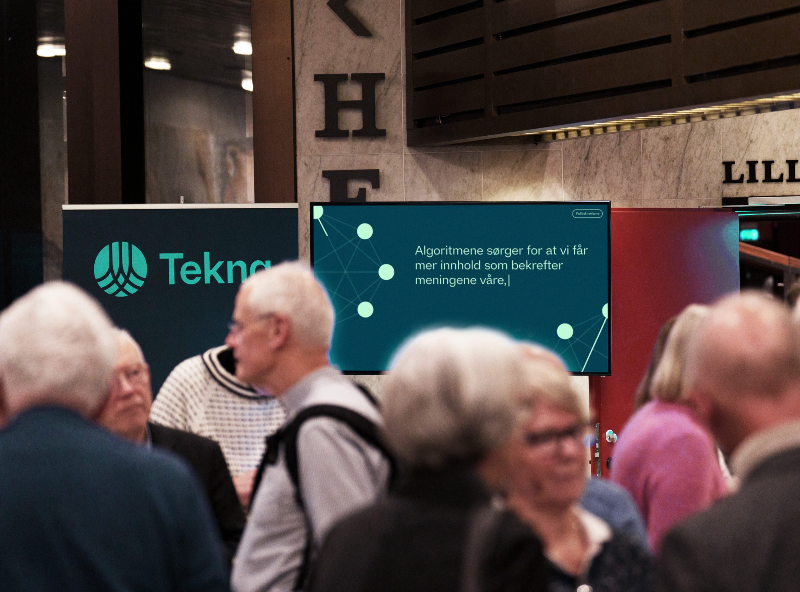Konferansen ble arrangert i Oslo Konserthus og Tekna ønsket seg en digital utstilling i foajeen for å gi publikum en visuell og engasjerende opplevelse løpet av mottakelsen og i pauser.